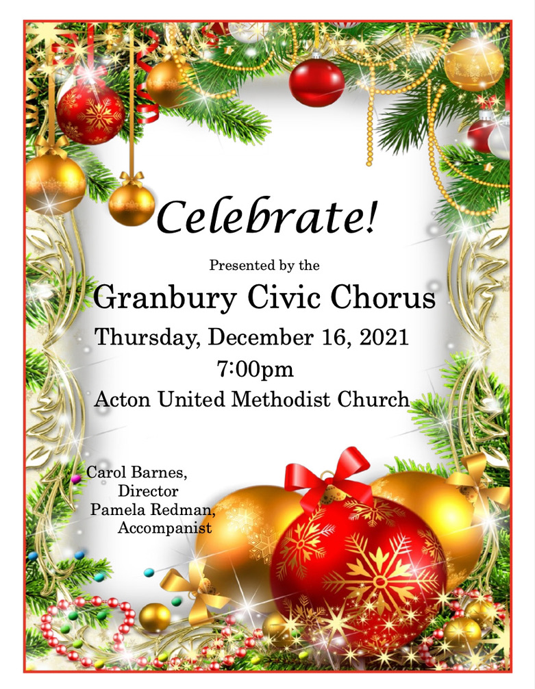 Dress Rehearsal for Christmas Concert: Monday, December 13, at Acton United Methodist Church.