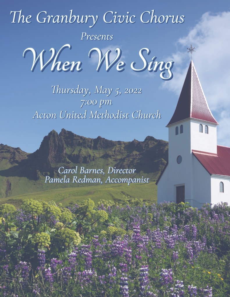 Dress Rehearsal for When We Sing: Monday, May 2, at Acton United Methodist Church.